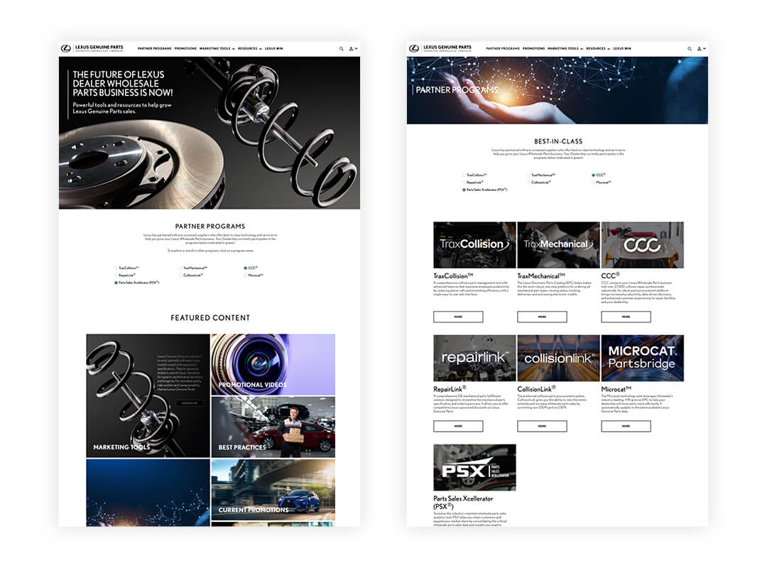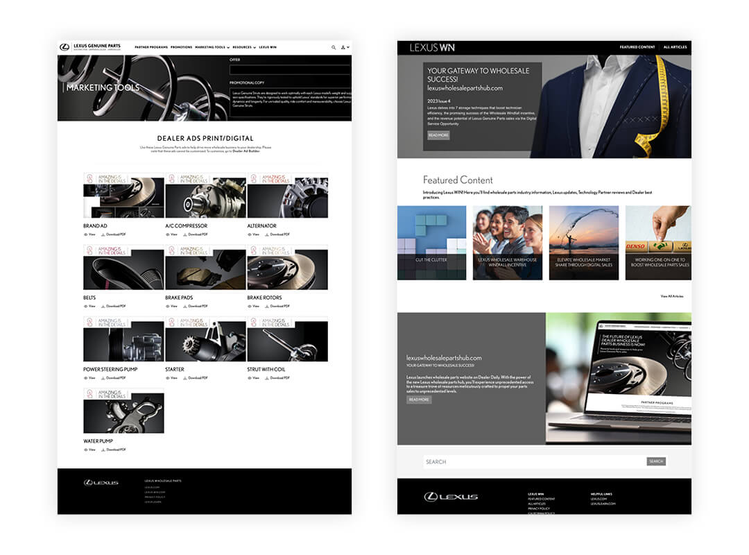 LIEHR joined forces with Lexus to create a suite of tools designed to empower Lexus wholesale parts managers in their part sales. These solutions help build and sustain long-term purchasing relationships between Lexus and Independent Repair Facilities (IRFs), ultimately boosting sales of mechanical and collision wholesale parts across all Lexus dealerships. The initiative culminated in a versatile marketing hub that allows dealers to design their own brochures, parts advertisements, and supportive website tools to enhance their parts marketing efforts.