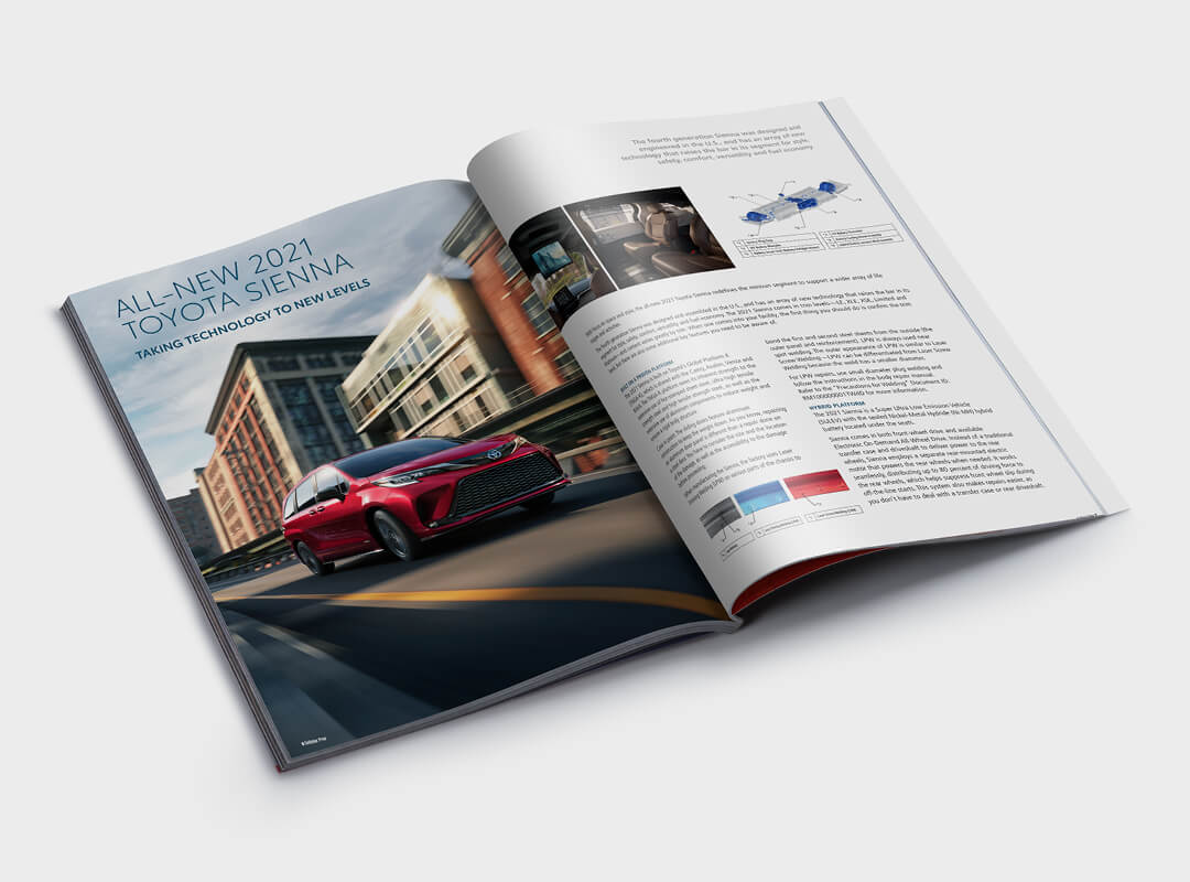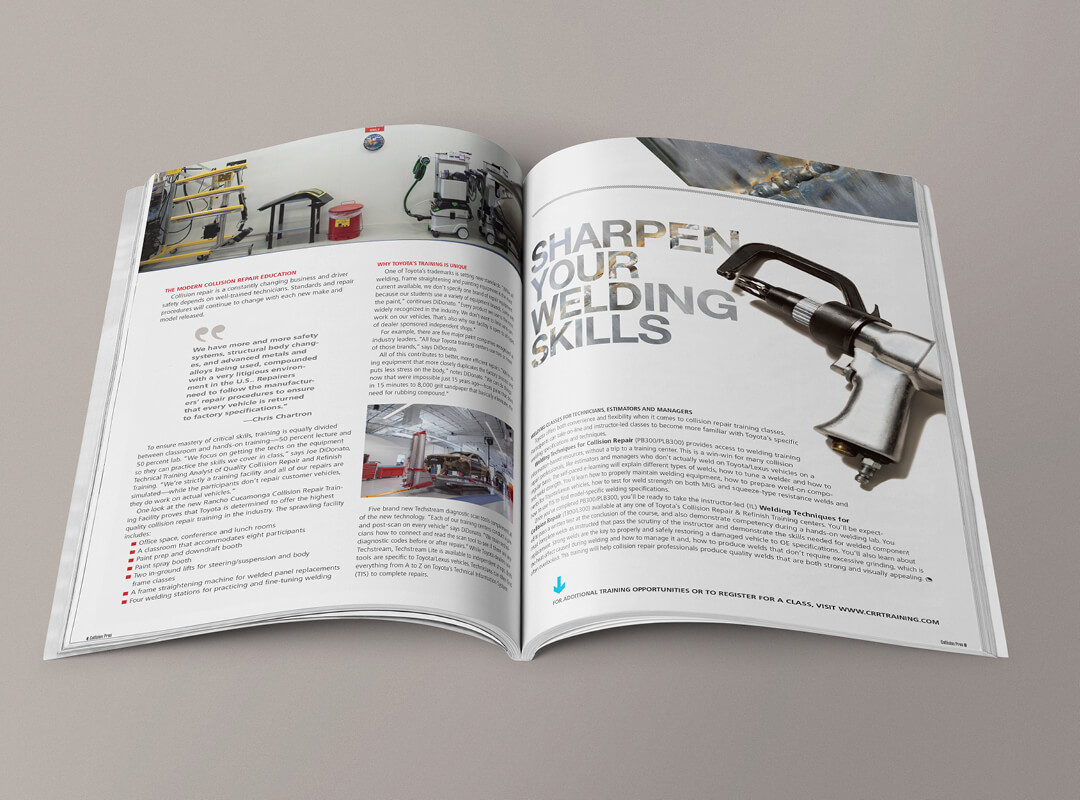 Toyota Collision Pros Magazine was Toyota Genuine Parts’ premier publication for collision and repair news, industry alerts, and essential repair procedures. To support Toyota’s mission of educating independent body shop repairers (IRFs) on proper repair techniques, LIEHR developed and managed this award-winning quarterly magazine for 13 years.