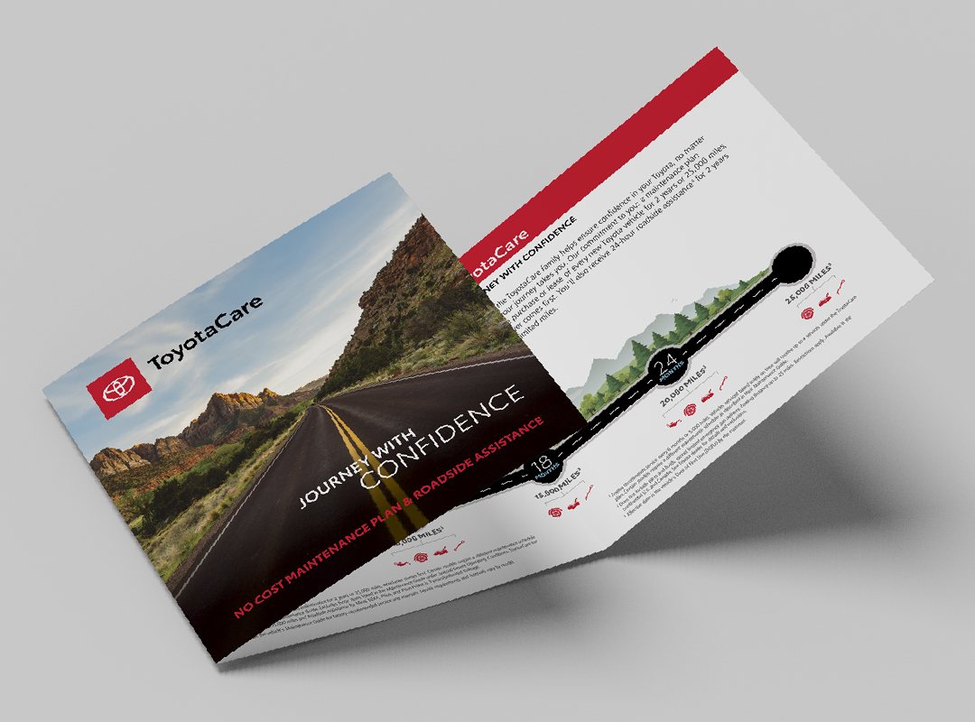 Toyota’s Customer Engagement and Retention Department entrusted LIEHR with refreshing and updating all customer-facing marketing materials for ToyotaCare, the company’s renowned no-cost maintenance and roadside assistance program. With a focus on clarity, consistency, and engagement, LIEHR modernized ToyotaCare’s messaging, ensuring that every touchpoint effectively communicated the program’s value. Our team refined the language, design, and structure of ToyotaCare’s marketing materials, enhancing their appeal across multiple platforms, from dealership signage and brochures to digital assets and customer communications.