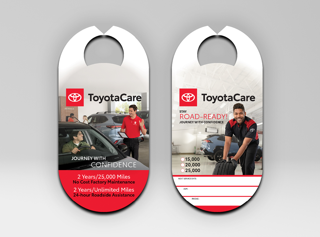 To help Toyota retain customers in the service drive and maximize no-cost maintenance utilization, LIEHR developed new model-specific hang tags for various maintenance intervals, reinforcing service reminders at key touchpoints.
